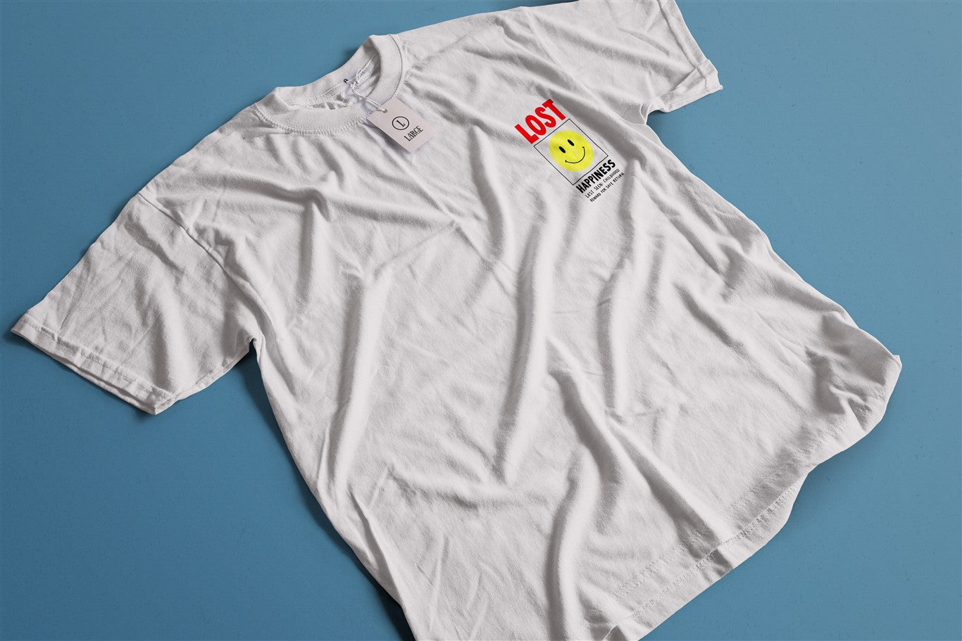 Featuring a meaningful “Lost” text and a minimal smiley design on the front, this t-shirt offers a calm yet striking statement. Made from 100% cotton, it provides soft texture and breathable comfort all day long. Crafted with non-toxic, eco-friendly inks, this exclusive design is truly one of a kind.