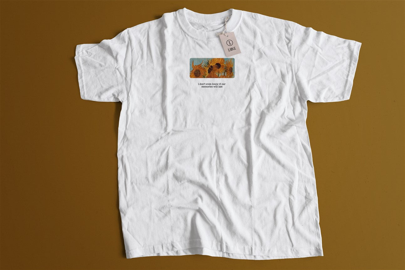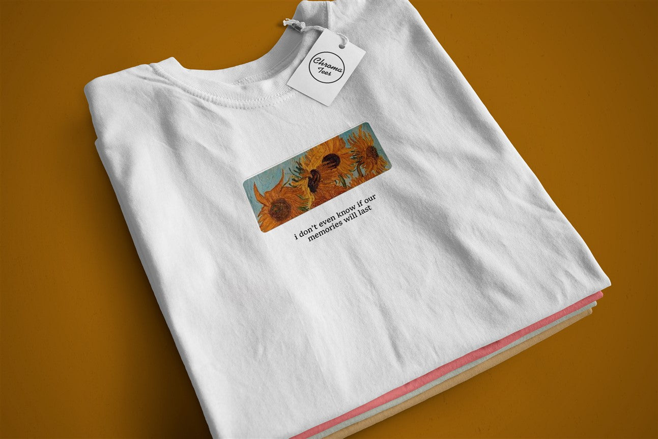 Sunflowers? Check. A hint of mystery? Check. And that iconic line: “I don’t even know if our memories are real.” This tee is a whole vibe! ✨